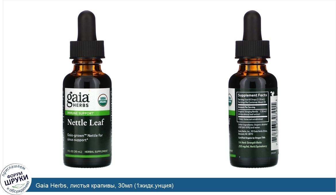 Друзья, если у вас есть отзыв/дополнение/комментарий/вопрос относительно Gaia Herbs, листья крапивы, 30мл (1жидк.унция) - напишите его ответом в эту тему (это будет полезно всему сообществу в целом и вам в отдельности).