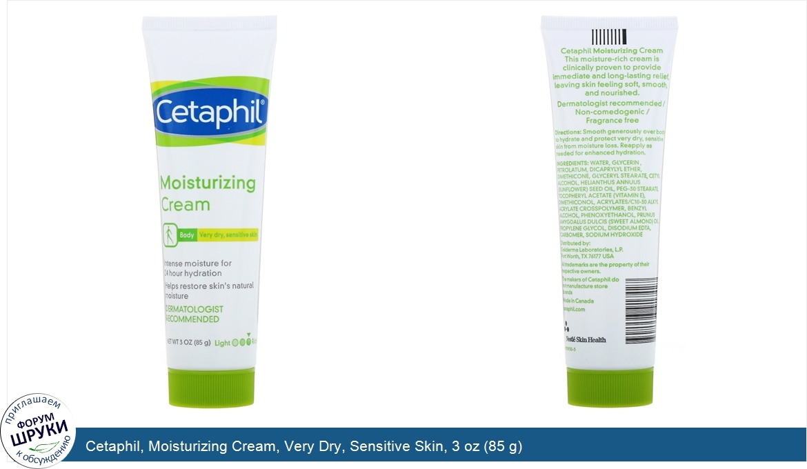 Друзья, если у вас есть отзыв/дополнение/комментарий/вопрос относительно Cetaphil, Moisturizing Cream, Very Dry, Sensitive Skin, 3 oz (85 g) - напишите его ответом в эту тему (это будет полезно всему сообществу в целом и вам в отдельности).