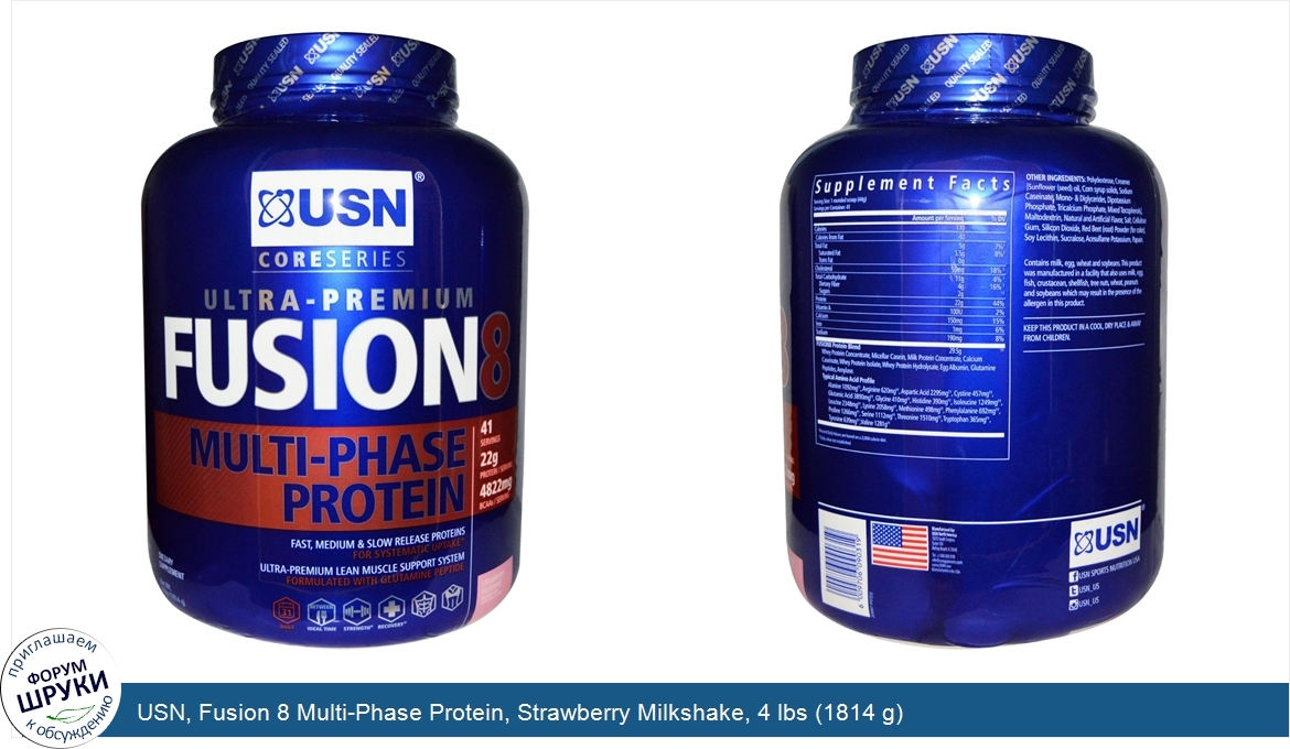 USN, Fusion 8 Multi-Phase Protein, Strawberry Milkshake, 4 lbs (1814 g)