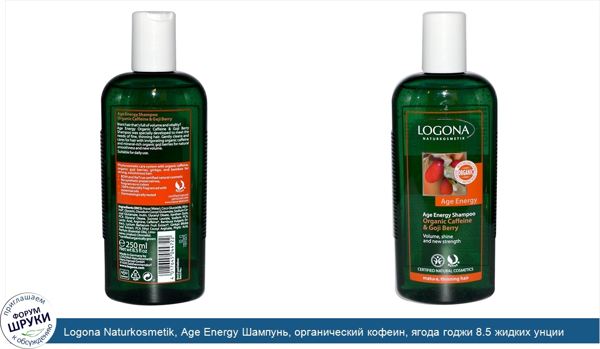 Друзья, если у вас есть отзыв/дополнение/комментарий/вопрос относительно Logona Naturkosmetik, Age Energy Шампунь, органический кофеин, ягода годжи 8.5 жидких унции (250 мл) - напишите его ответом в эту тему (это будет полезно всему сообществу в целом и вам в отдельности).