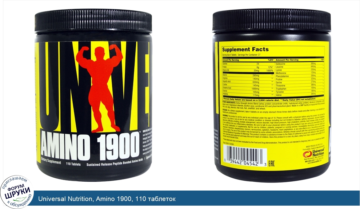 Друзья, если у вас есть отзыв/дополнение/комментарий/вопрос относительно Universal Nutrition, Amino 1900, 110 таблеток - напишите его ответом в эту тему (это будет полезно всему сообществу в целом и вам в отдельности).