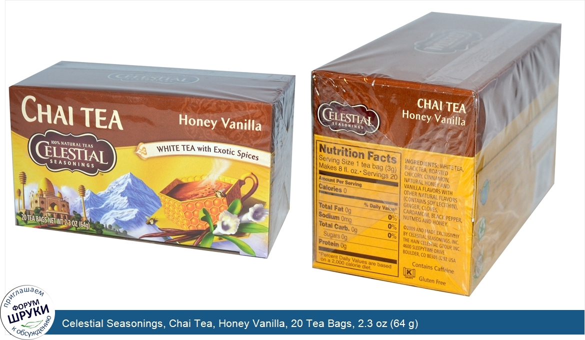 Друзья, если у вас есть отзыв/дополнение/комментарий/вопрос относительно Celestial Seasonings, Chai Tea, Honey Vanilla, 20 Tea Bags, 2.3 oz (64 g) - напишите его ответом в эту тему (это будет полезно всему сообществу в целом и вам в отдельности).