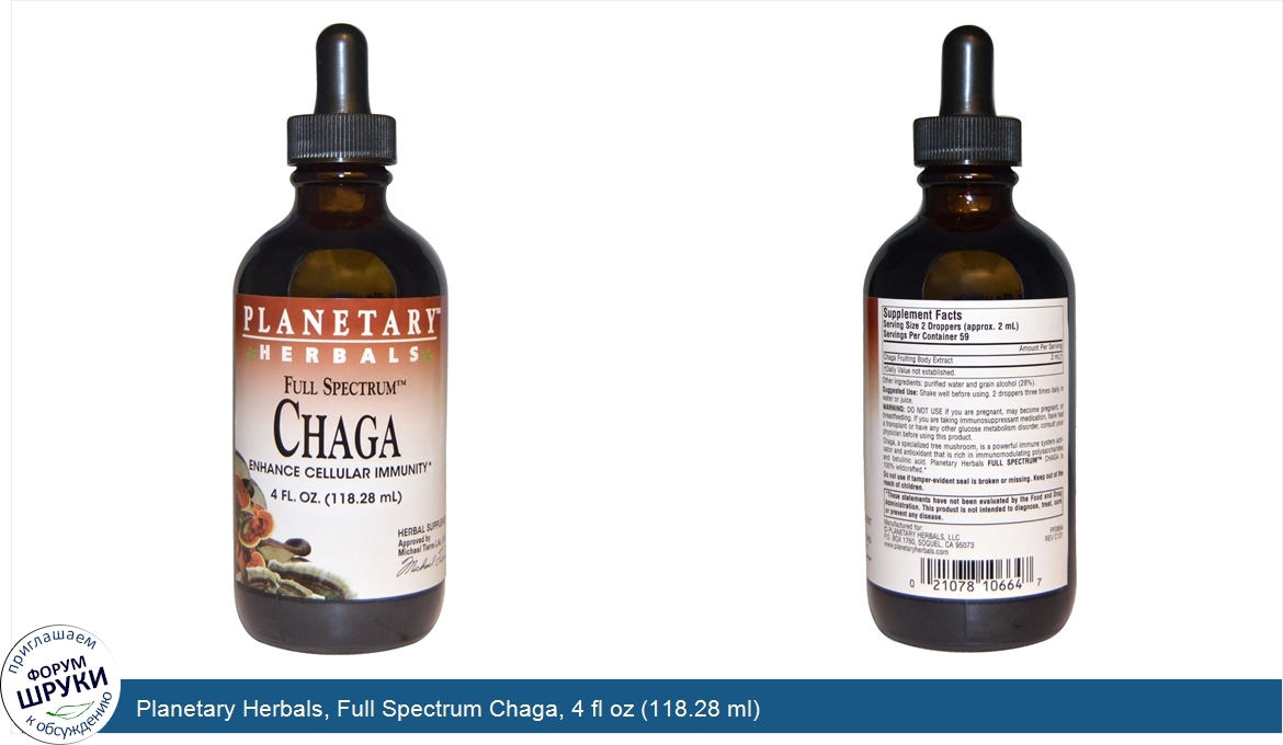 Друзья, если у вас есть отзыв/дополнение/комментарий/вопрос относительно Planetary Herbals, Full Spectrum Chaga, 4 fl oz (118.28 ml) - напишите его ответом в эту тему (это будет полезно всему сообществу в целом и вам в отдельности).