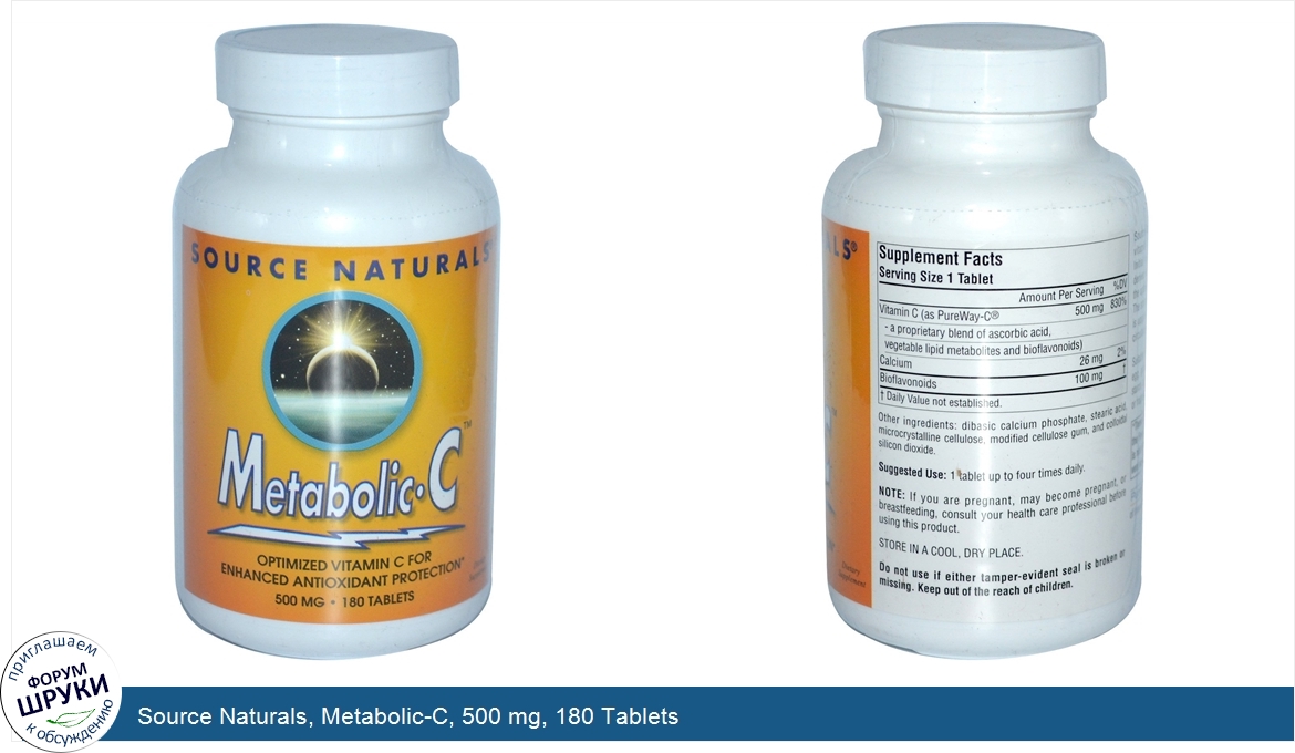 Source Naturals, Metabolic-C, 500 mg, 180 Tablets