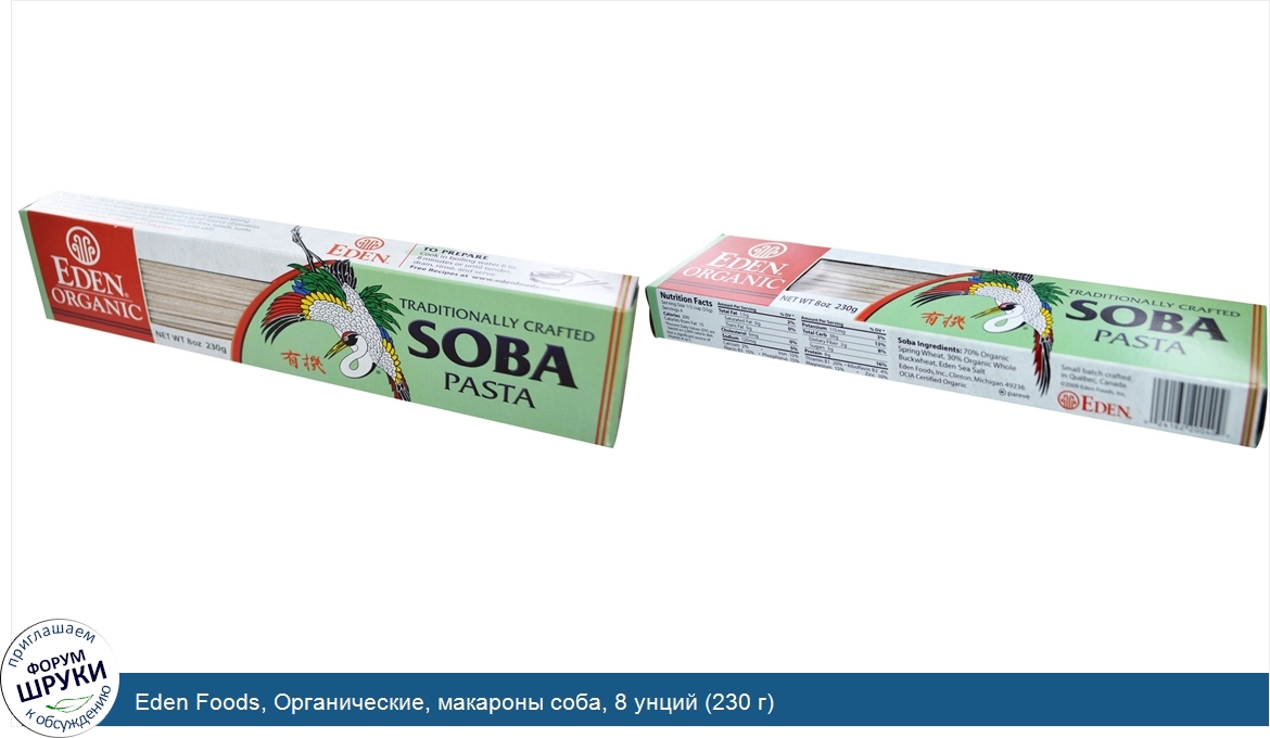 Друзья, если у вас есть отзыв/дополнение/комментарий/вопрос относительно Eden Foods, Органические, макароны соба, 8 унций (230 г) - напишите его ответом в эту тему (это будет полезно всему сообществу в целом и вам в отдельности).