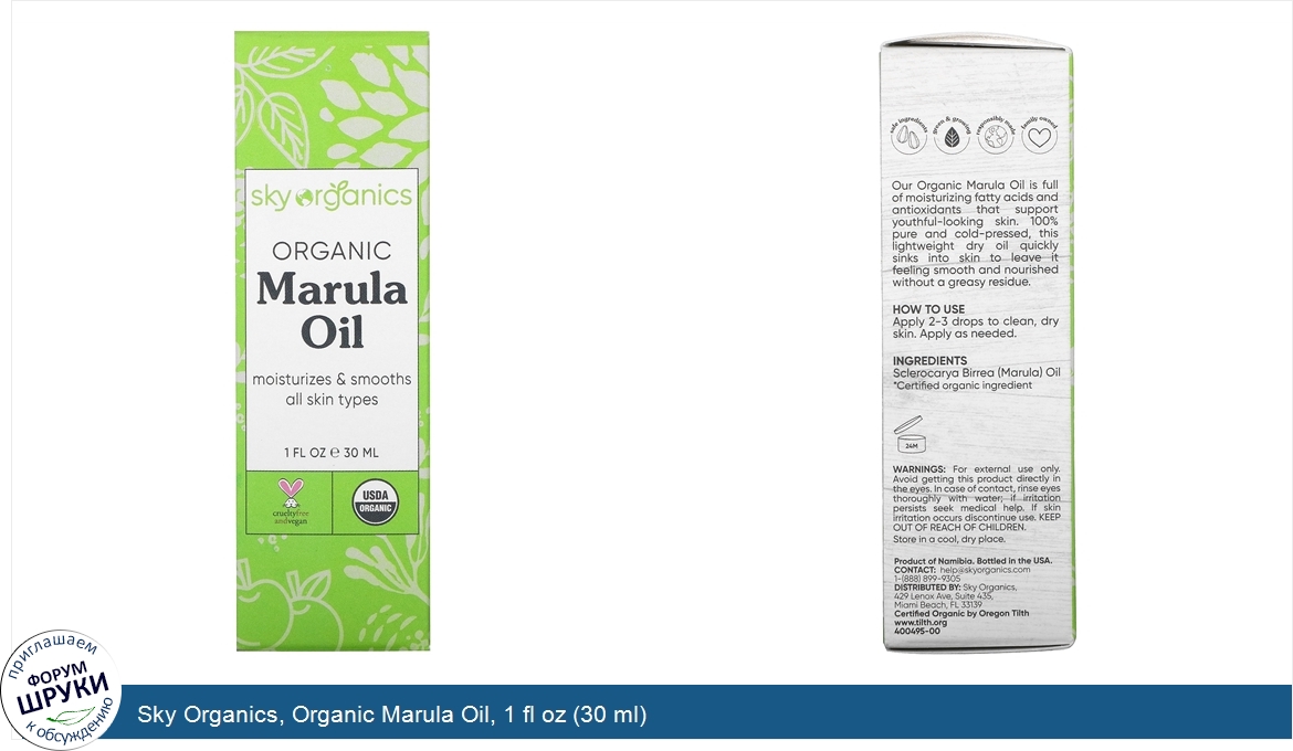 [DESCRIPT]Moisturizes Smoothes. All Skin Types. Cruelty Free and Vegan. USDA Organic. No Parabens. No Phthalates. No Silicones. No Sulfates. No Mineral Oil. No Petrolatum. No Dyes. Glass Dropper. Safe Ingredients. Green Growing. Responsibly Made. Family Owned. Certified Organic by Oregon Tilth. We started in our kitchen - creating everyday essentials that were safe for our growing family. Soon we discovered that living a natural lifestyle could be easy, beautiful, and affordable - and are still proving it today by making products in small batches, and using responsibly sourced clean ingredients that are kind to you and the planet. - The Sky Organics Family. Our Organic Marula Oil is full of moisturizing fatty acids and antioxidants that support youthful-looking skin. 100% pure and cold-pressed, this lightweight dry oil quickly sinks into skin to leave it feeling smooth and nourished without a greasy residue.[/DESCRIPT]... (описание дополняется)