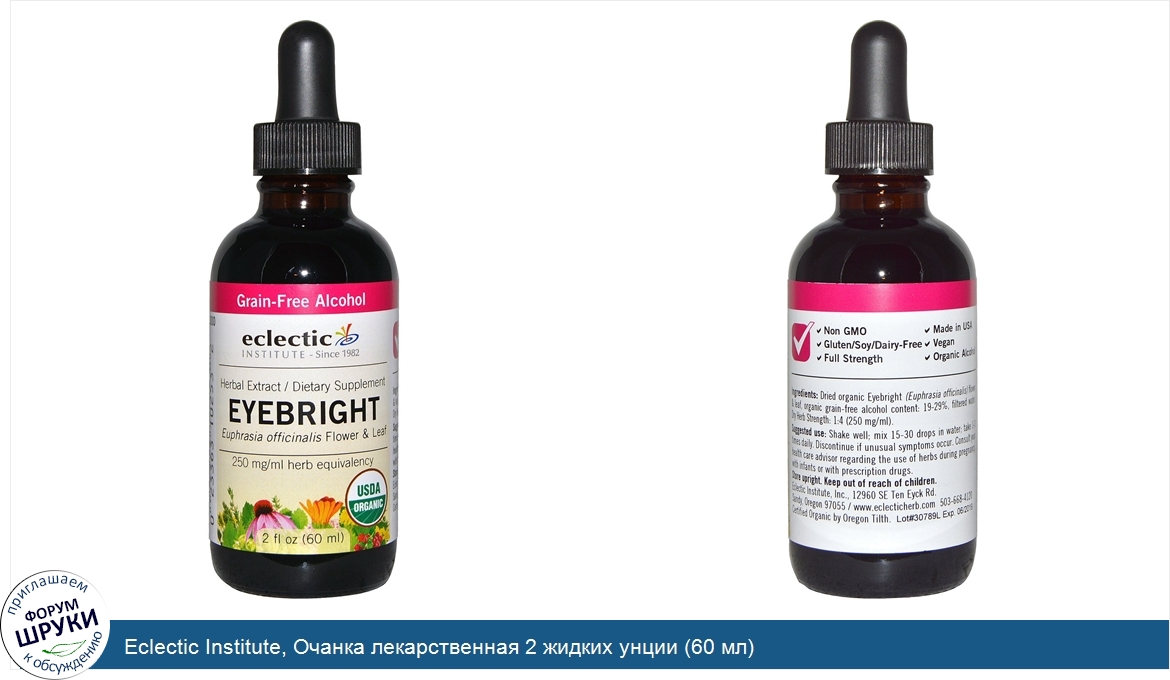 Друзья, если у вас есть отзыв/дополнение/комментарий/вопрос относительно Eclectic Institute, Очанка лекарственная 2 жидких унции (60 мл) - напишите его ответом в эту тему (это будет полезно всему сообществу в целом и вам в отдельности).