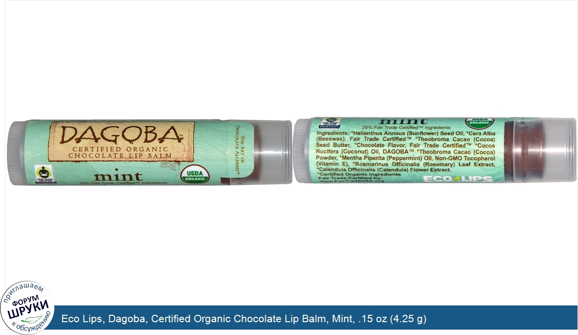 Друзья, если у вас есть отзыв/дополнение/комментарий/вопрос относительно Eco Lips, Dagoba, Certified Organic Chocolate Lip Balm, Mint, .15 oz (4.25 g) - напишите его ответом в эту тему (это будет полезно всему сообществу в целом и вам в отдельности).