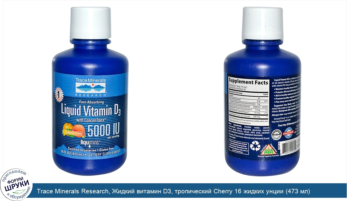 Trace Minerals Research, Жидкий витамин D3, тропический Cherry 16 жидких унции (473 мл)