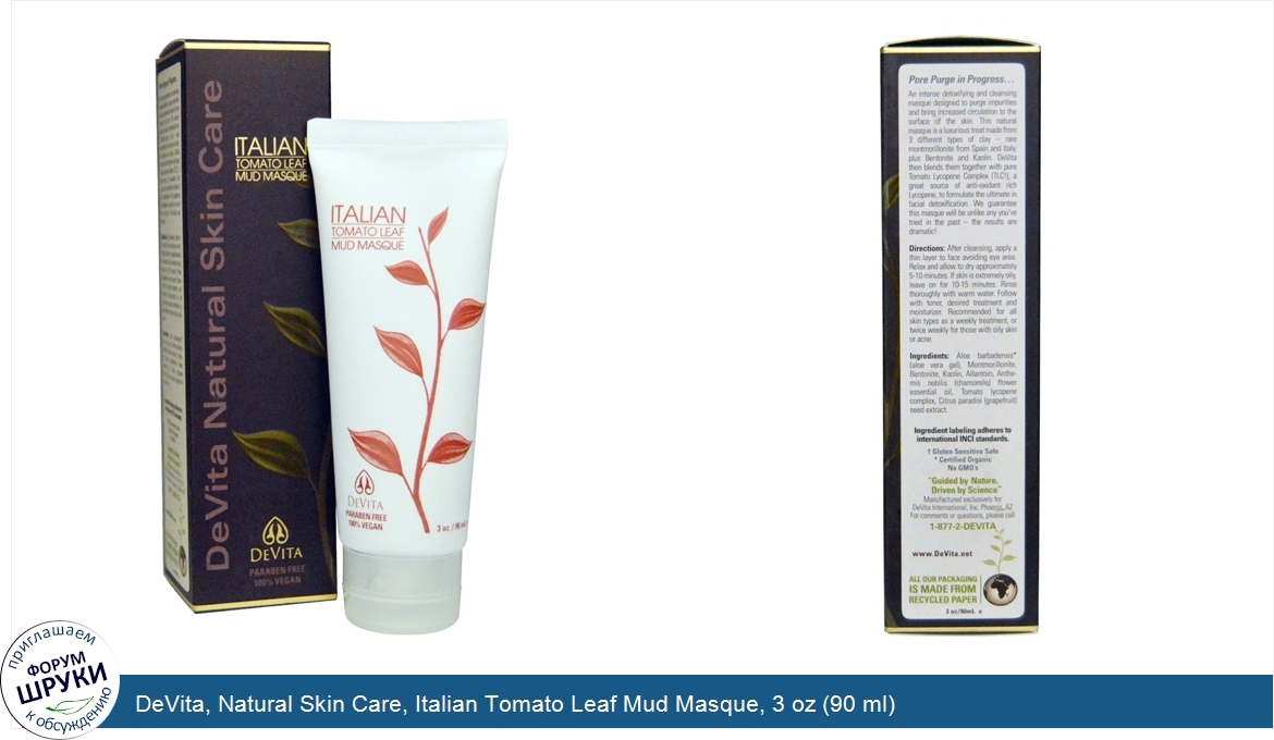 Друзья, если у вас есть отзыв/дополнение/комментарий/вопрос относительно DeVita, Natural Skin Care, Italian Tomato Leaf Mud Masque, 3 oz (90 ml) - напишите его ответом в эту тему (это будет полезно всему сообществу в целом и вам в отдельности).