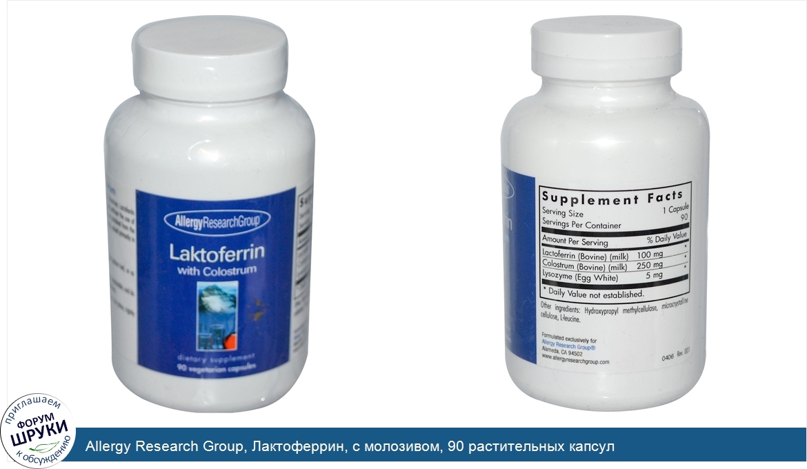 Друзья, если у вас есть отзыв/дополнение/комментарий/вопрос относительно Allergy Research Group, Лактоферрин, с молозивом, 90 растительных капсул - напишите его ответом в эту тему (это будет полезно всему сообществу в целом и вам в отдельности).