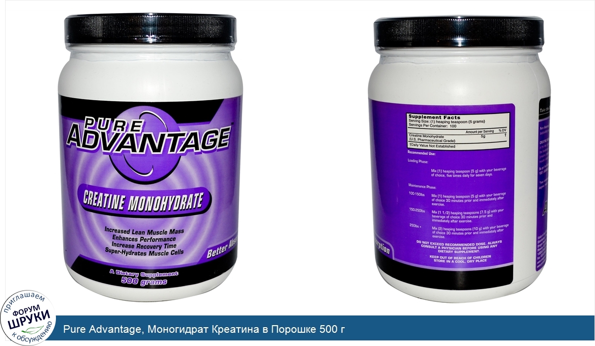 Друзья, если у вас есть отзыв/дополнение/комментарий/вопрос относительно Pure Advantage, Моногидрат Креатина в Порошке 500 г - напишите его ответом в эту тему (это будет полезно всему сообществу в целом и вам в отдельности).