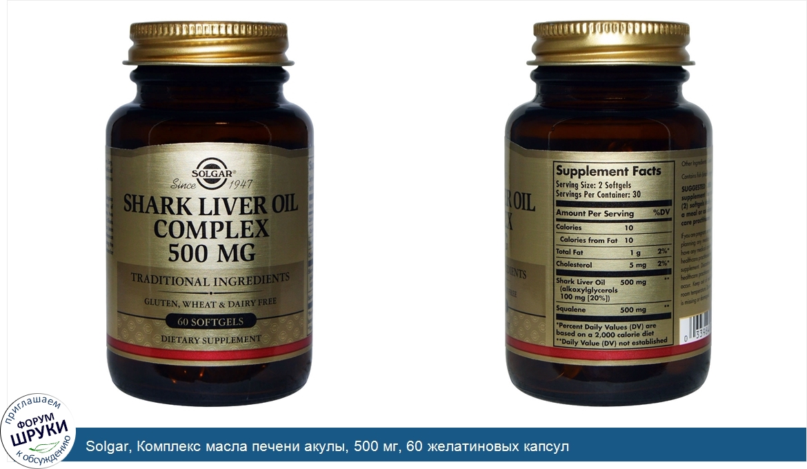 Друзья, если у вас есть отзыв/дополнение/комментарий/вопрос относительно Solgar, Комплекс масла печени акулы, 500 мг, 60 желатиновых капсул - напишите его ответом в эту тему (это будет полезно всему сообществу в целом и вам в отдельности).