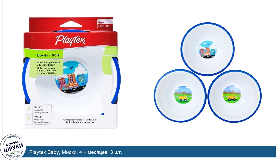 ru Playtex Baby, Миски, 4 + месяцев, 3 шт.
