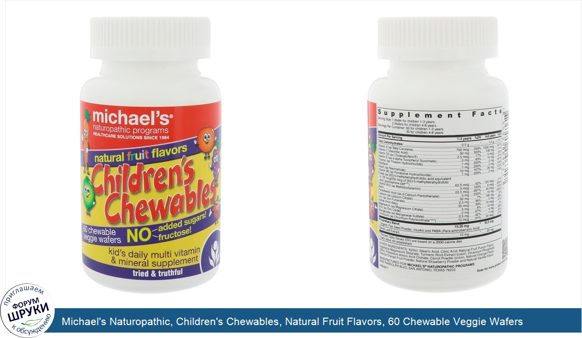 Друзья, если у вас есть отзыв/дополнение/комментарий/вопрос относительно Michael's Naturopathic, Children's Chewables, Natural Fruit Flavors, 60 Chewable Veggie Wafers - напишите его ответом в эту тему (это будет полезно всему сообществу в целом и вам в отдельности).