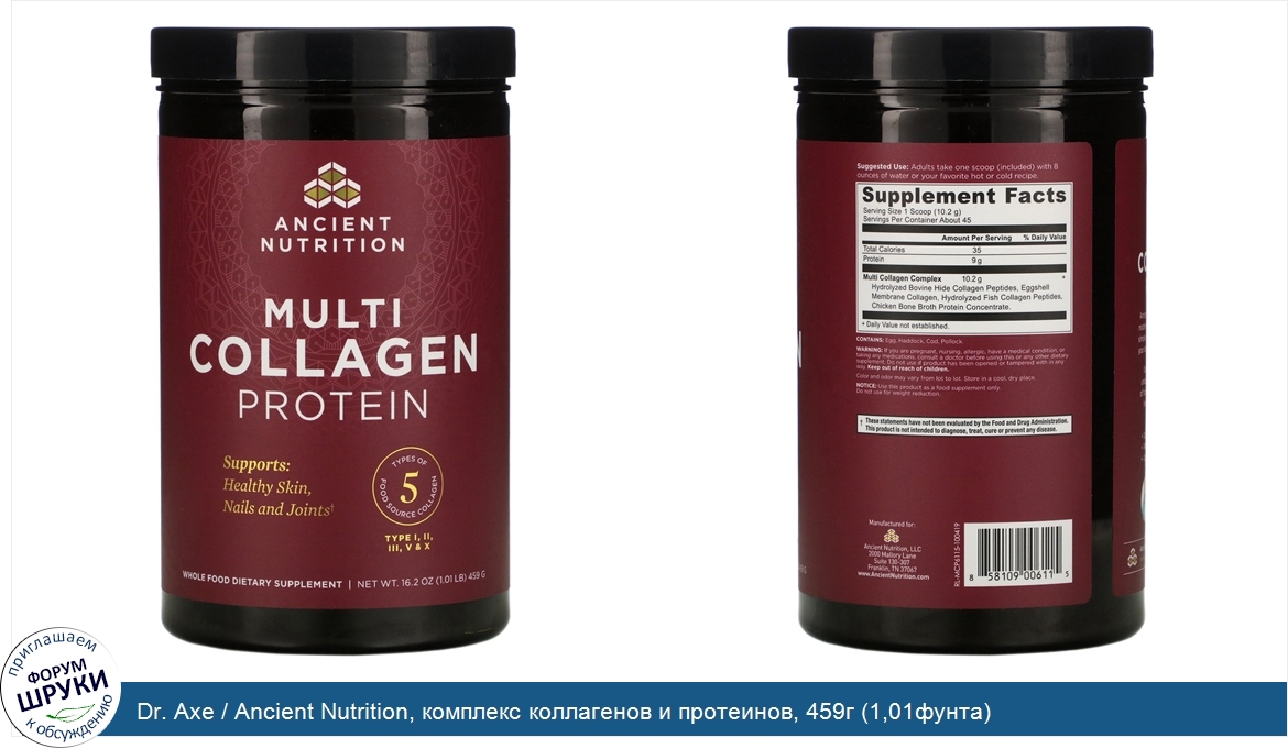 Друзья, если у вас есть отзыв/дополнение/комментарий/вопрос относительно Dr. Axe / Ancient Nutrition, комплекс коллагенов и протеинов, 459г (1,01фунта) - напишите его ответом в эту тему (это будет полезно всему сообществу в целом и вам в отдельности).