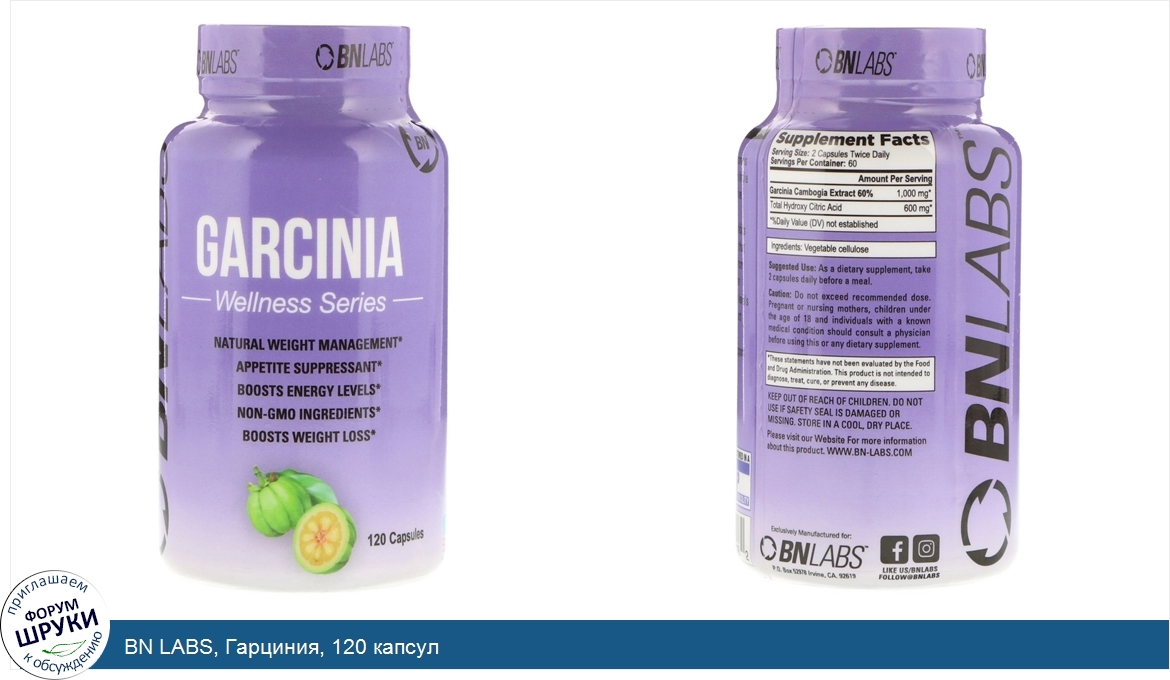 Друзья, если у вас есть отзыв/дополнение/комментарий/вопрос относительно BN LABS, Гарциния, 120 капсул - напишите его ответом в эту тему (это будет полезно всему сообществу в целом и вам в отдельности).