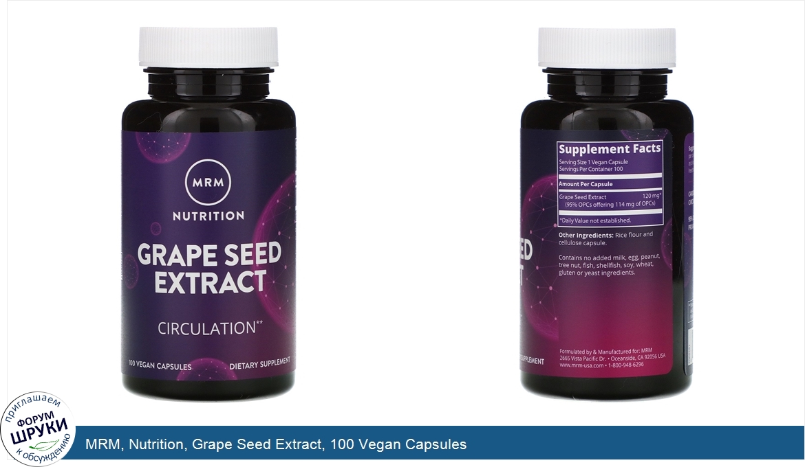 ru MRM, Nutrition, Grape Seed Extract, 100 Vegan Capsules