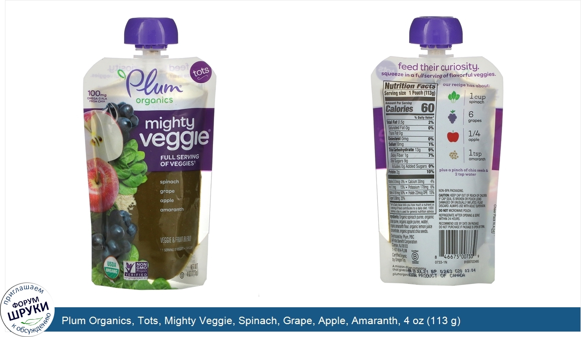 Друзья, если у вас есть отзыв/дополнение/комментарий/вопрос относительно Plum Organics, Tots, Mighty Veggie, Spinach, Grape, Apple, Amaranth, 4 oz (113 g) - напишите его ответом в эту тему (это будет полезно всему сообществу в целом и вам в отдельности).