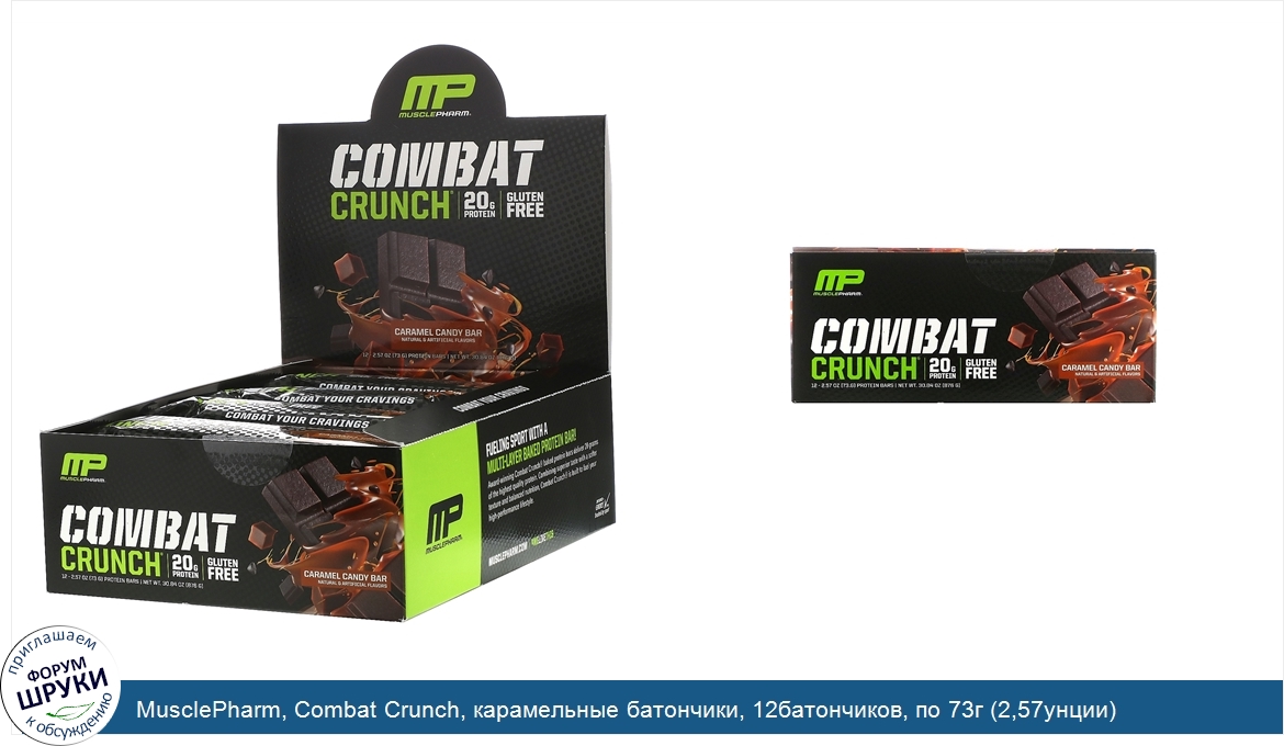 MusclePharm, Combat Crunch, карамельные батончики, 12батончиков, по 73г (2,57унции)