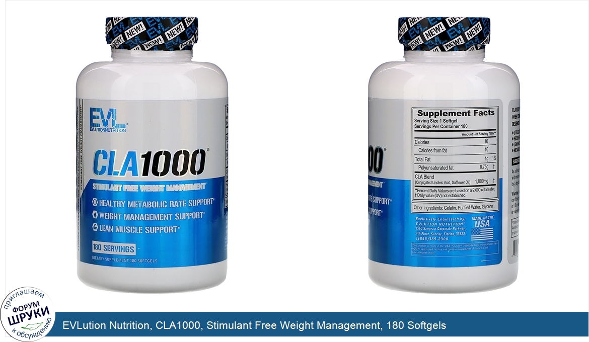 Друзья, если у вас есть отзыв/дополнение/комментарий/вопрос относительно EVLution Nutrition, CLA1000, Stimulant Free Weight Management, 180 Softgels - напишите его ответом в эту тему (это будет полезно всему сообществу в целом и вам в отдельности).