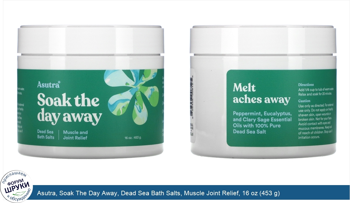 Asutra, Soak The Day Away, Dead Sea Bath Salts, Muscle Joint Relief, 16 oz (453 g)