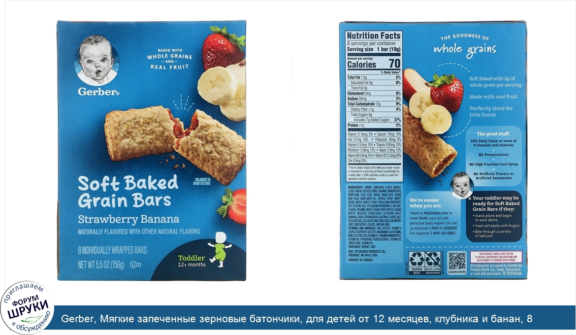Друзья, если у вас есть отзыв/дополнение/комментарий/вопрос относительно Gerber, Мягкие запеченные зерновые батончики, для детей от 12 месяцев, клубника и банан, 8 батончиков, 156 г (5,5унции) - напишите его ответом в эту тему (это будет полезно всему сообществу в целом и вам в отдельности).