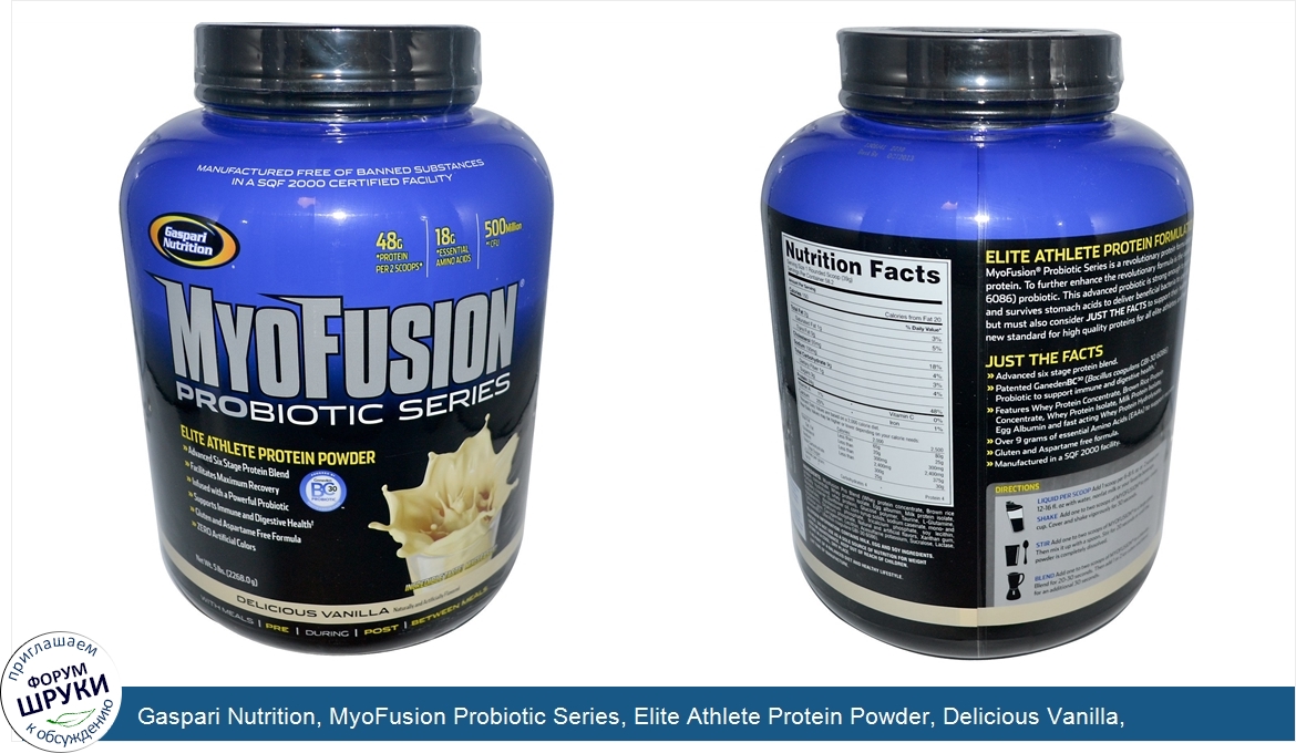 Gaspari Nutrition, MyoFusion Probiotic Series, Elite Athlete Protein Powder, Delicious Vanilla, 5 lbs (2268.0 g)
