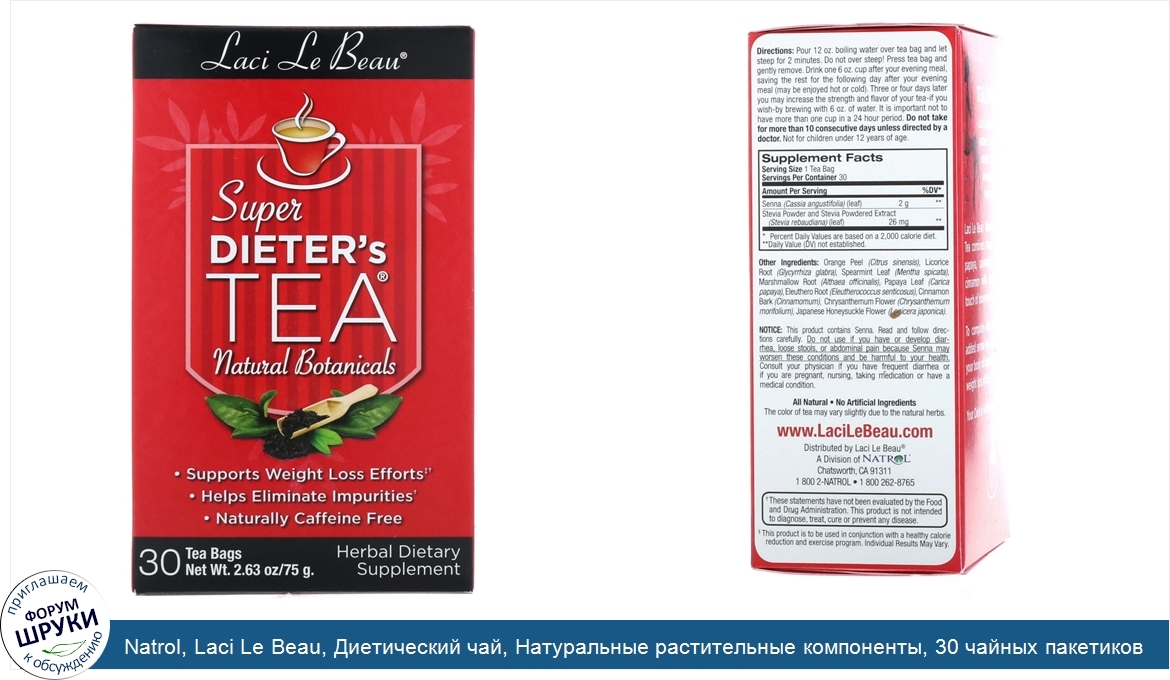 ru Natrol, Laci Le Beau, Диетический чай, Натуральные растительные компоненты, 30 чайных пакетиков, 2,63 унции (75 г)