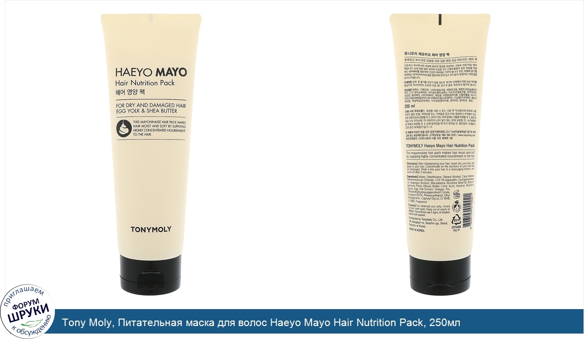 Друзья, если у вас есть отзыв/дополнение/комментарий/вопрос относительно Tony Moly, Питательная маска для волос Haeyo Mayo Hair Nutrition Pack, 250мл - напишите его ответом в эту тему (это будет полезно всему сообществу в целом и вам в отдельности).