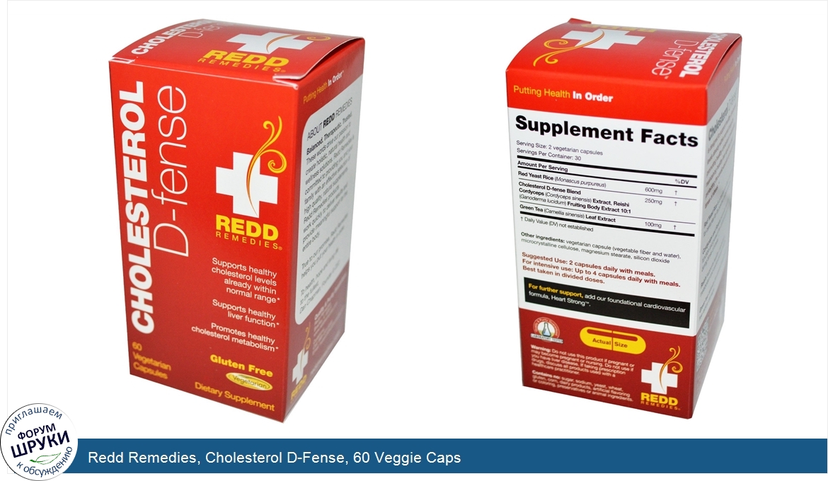 Друзья, если у вас есть отзыв/дополнение/комментарий/вопрос относительно Redd Remedies, Cholesterol D-Fense, 60 Veggie Caps - напишите его ответом в эту тему (это будет полезно всему сообществу в целом и вам в отдельности).