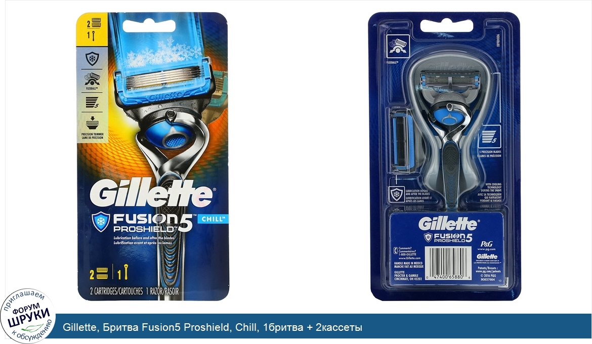 Gillette, Бритва Fusion5 Proshield, Chill, 1бритва + 2кассеты
