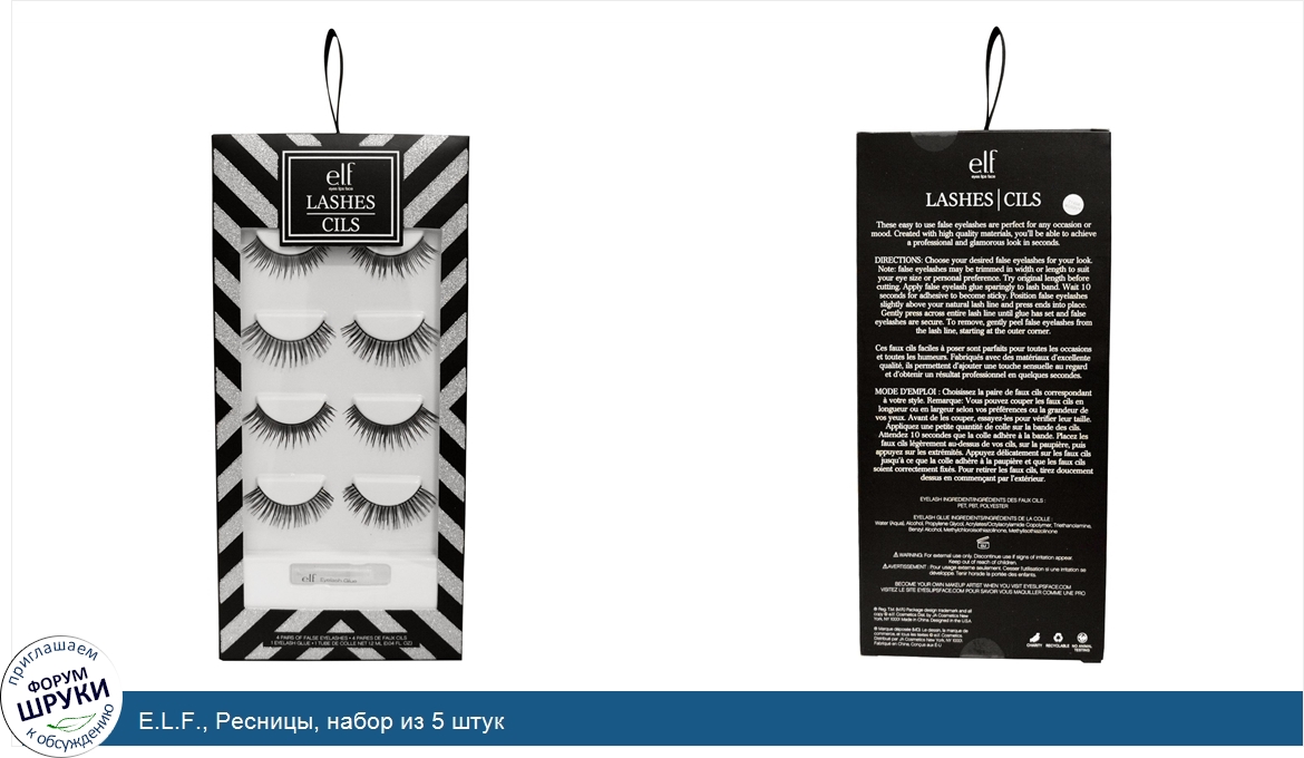 Друзья, если у вас есть отзыв/дополнение/комментарий/вопрос относительно E.L.F., Ресницы, набор из 5 штук - напишите его ответом в эту тему (это будет полезно всему сообществу в целом и вам в отдельности).