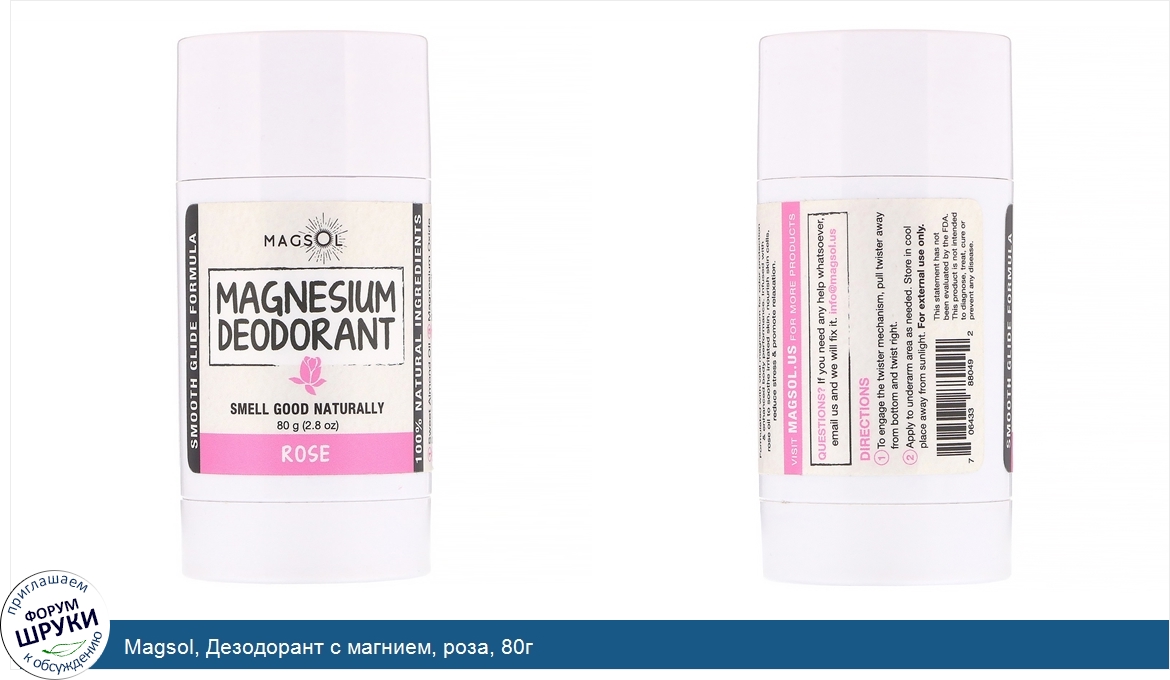 Друзья, если у вас есть отзыв/дополнение/комментарий/вопрос относительно Magsol, Дезодорант с магнием, роза, 80г - напишите его ответом в эту тему (это будет полезно всему сообществу в целом и вам в отдельности).