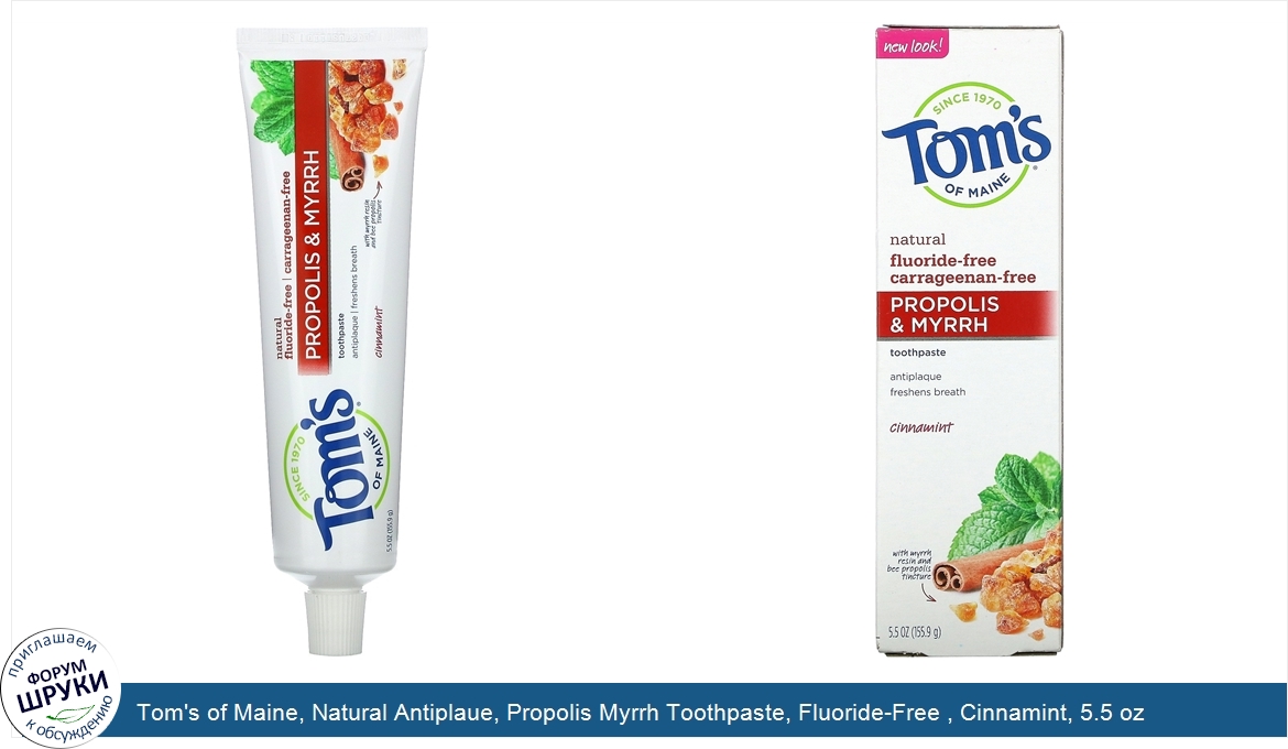 Tom's of Maine, Natural Antiplaue, Propolis Myrrh Toothpaste, Fluoride-Free , Cinnamint, 5.5 oz (155.9 g)