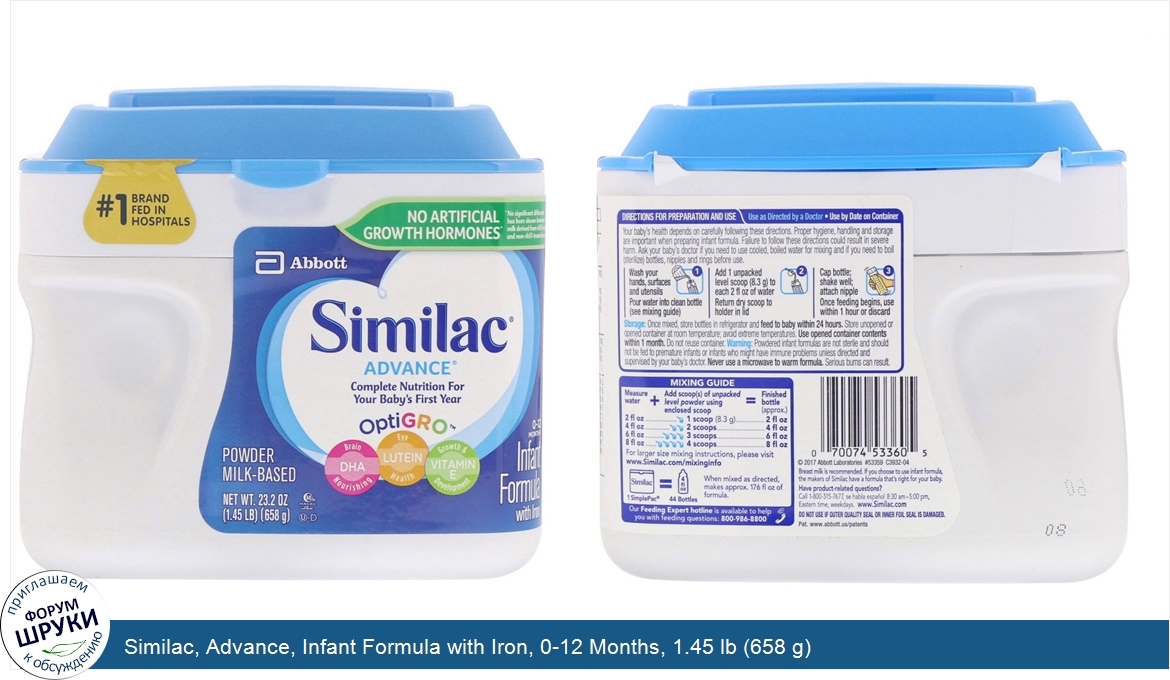 Друзья, если у вас есть отзыв/дополнение/комментарий/вопрос относительно Similac, Advance, Infant Formula with Iron, 0-12 Months, 1.45 lb (658 g) - напишите его ответом в эту тему (это будет полезно всему сообществу в целом и вам в отдельности).