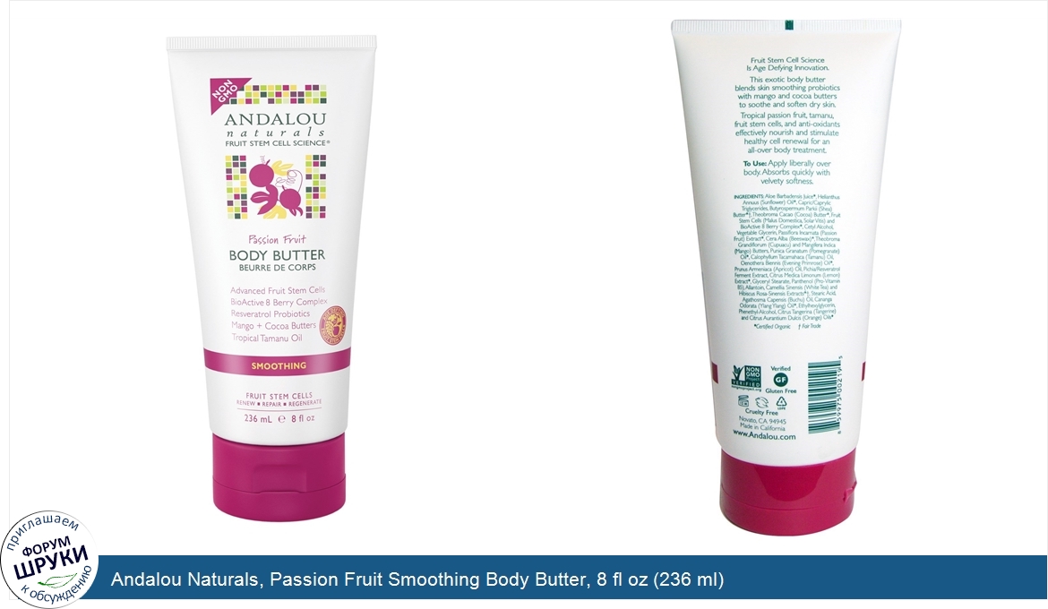 Друзья, если у вас есть отзыв/дополнение/комментарий/вопрос относительно Andalou Naturals, Passion Fruit Smoothing Body Butter, 8 fl oz (236 ml) - напишите его ответом в эту тему (это будет полезно всему сообществу в целом и вам в отдельности).