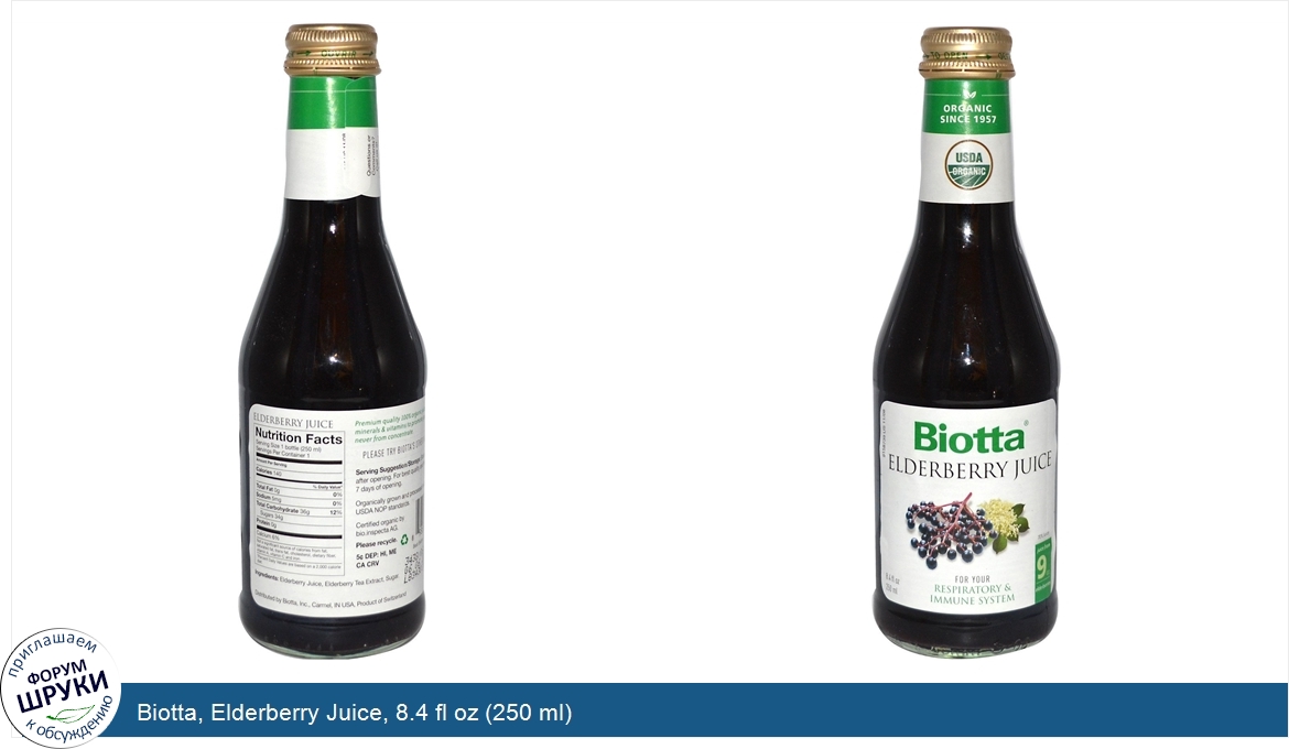 Друзья, если у вас есть отзыв/дополнение/комментарий/вопрос относительно Biotta, Elderberry Juice, 8.4 fl oz (250 ml) - напишите его ответом в эту тему (это будет полезно всему сообществу в целом и вам в отдельности).