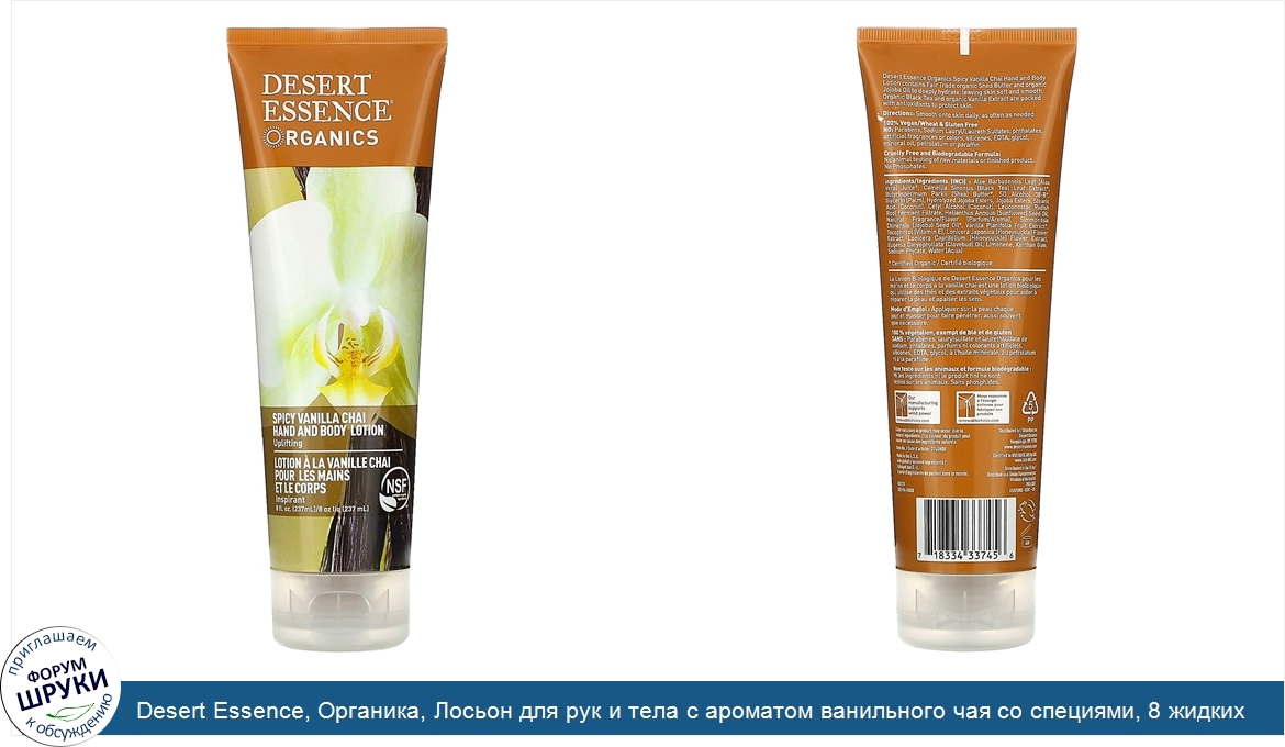 ru Desert Essence, Органика, Лосьон для рук и тела с ароматом ванильного чая со специями, 8 жидких унций (237 мл)