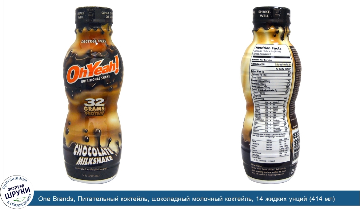 ru One Brands, Питательный коктейль, шоколадный молочный коктейль, 14 жидких унций (414 мл)