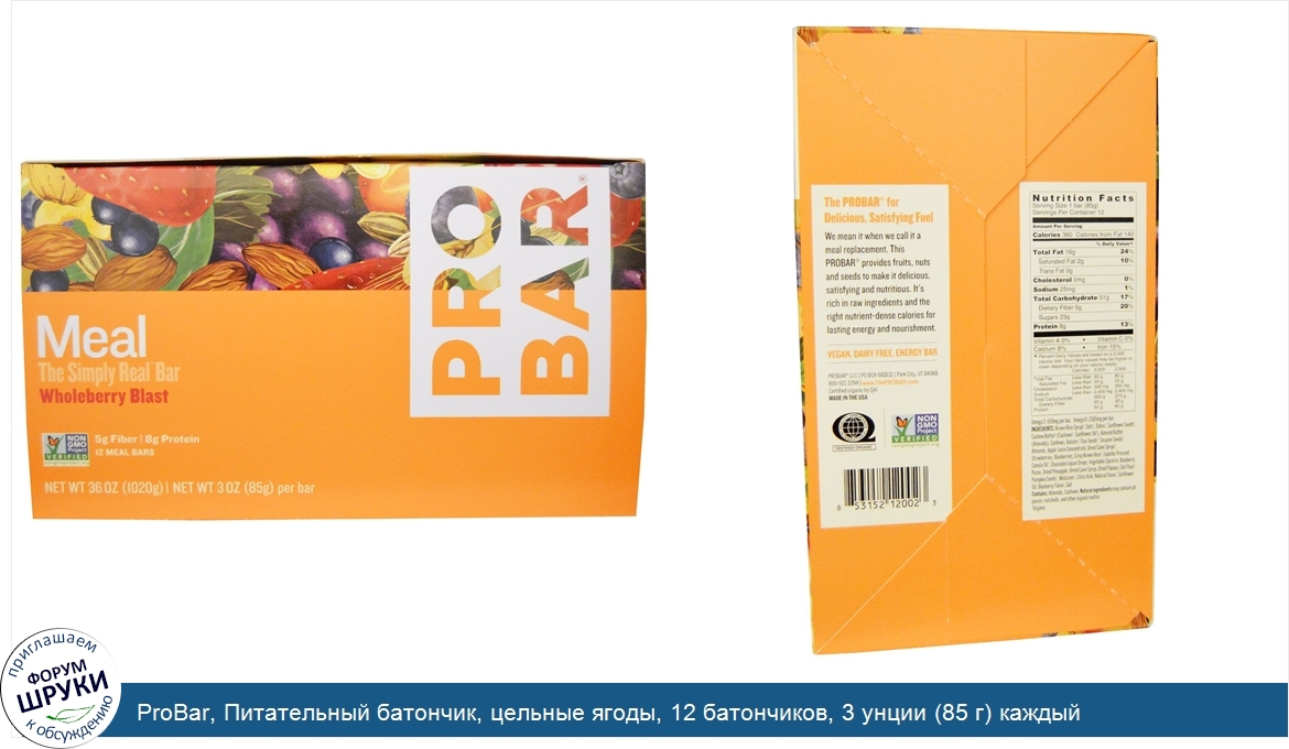 Друзья, если у вас есть отзыв/дополнение/комментарий/вопрос относительно ProBar, Питательный батончик, цельные ягоды, 12 батончиков, 3 унции (85 г) каждый - напишите его ответом в эту тему (это будет полезно всему сообществу в целом и вам в отдельности).