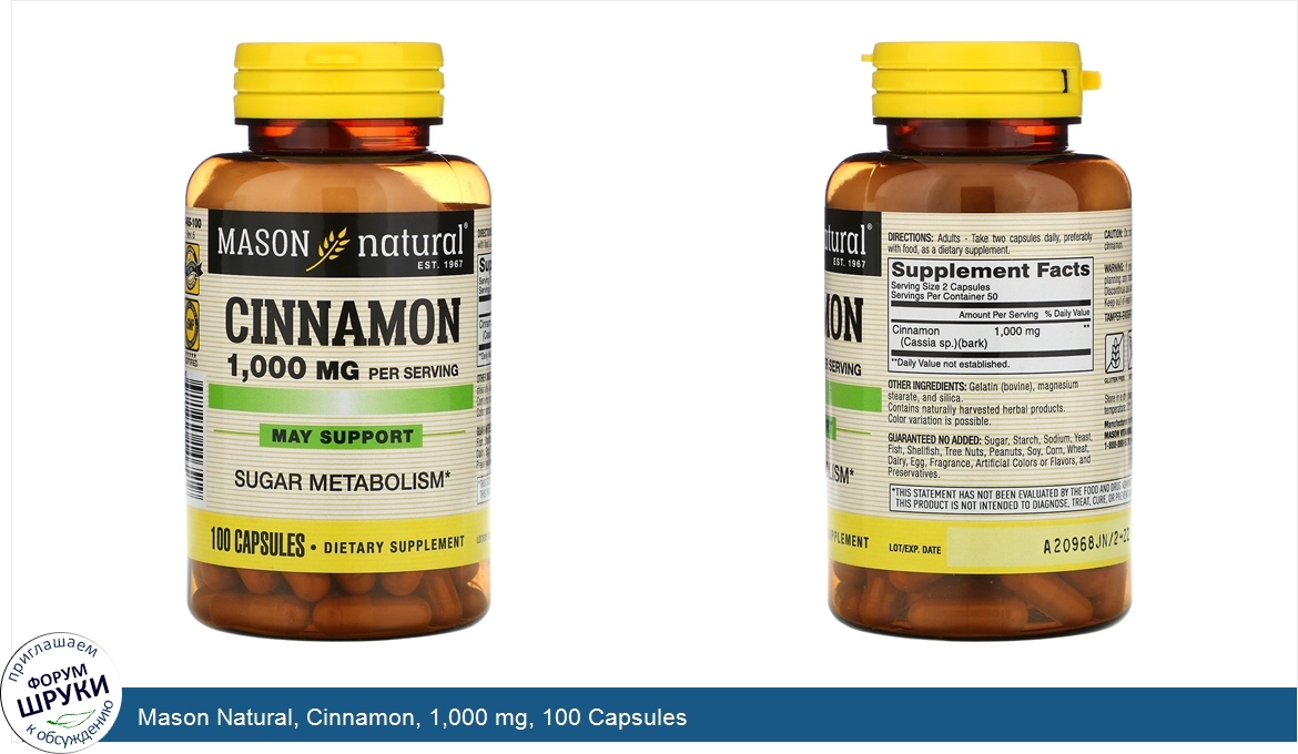 Друзья, если у вас есть отзыв/дополнение/комментарий/вопрос относительно Mason Natural, Cinnamon, 1,000 mg, 100 Capsules - напишите его ответом в эту тему (это будет полезно всему сообществу в целом и вам в отдельности).