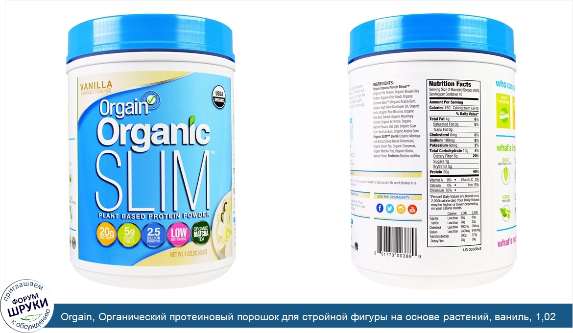 ru Orgain, Органический протеиновый порошок для стройной фигуры на основе растений, ваниль, 1,02 фунта (462 г)