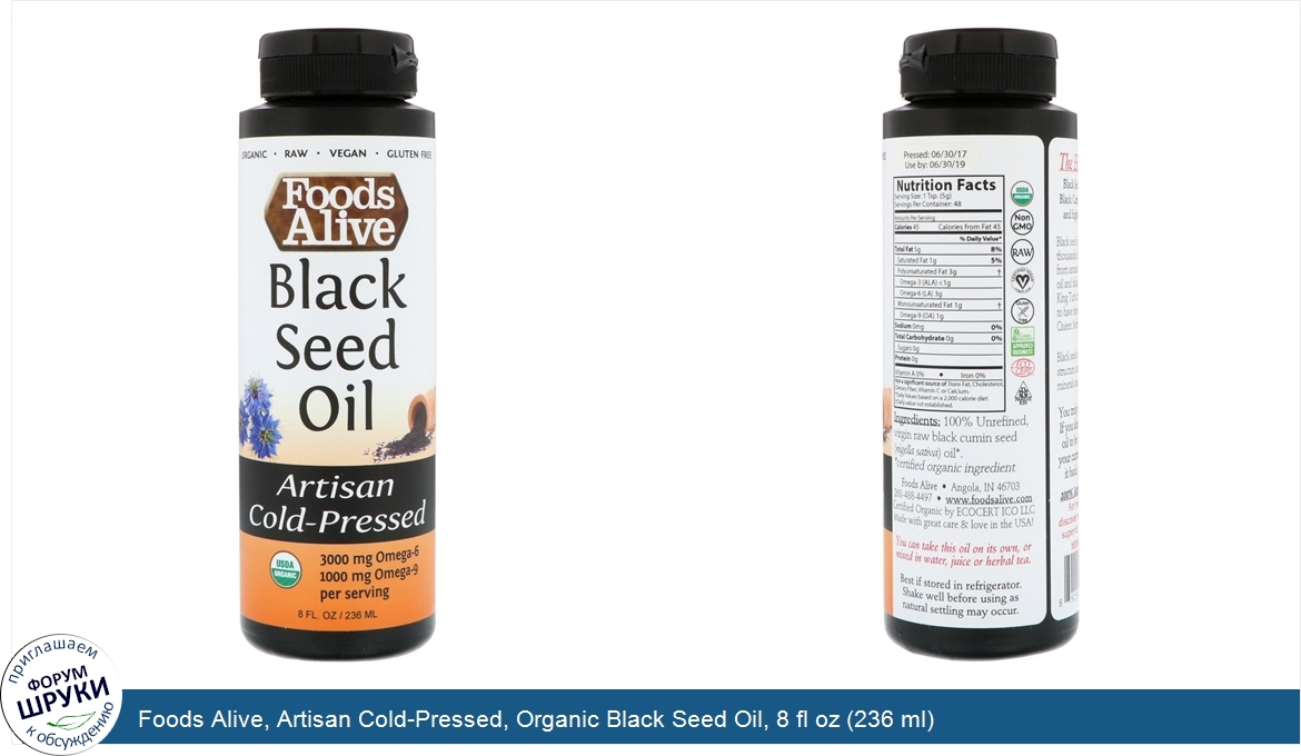 Друзья, если у вас есть отзыв/дополнение/комментарий/вопрос относительно Foods Alive, Artisan Cold-Pressed, Organic Black Seed Oil, 8 fl oz (236 ml) - напишите его ответом в эту тему (это будет полезно всему сообществу в целом и вам в отдельности).