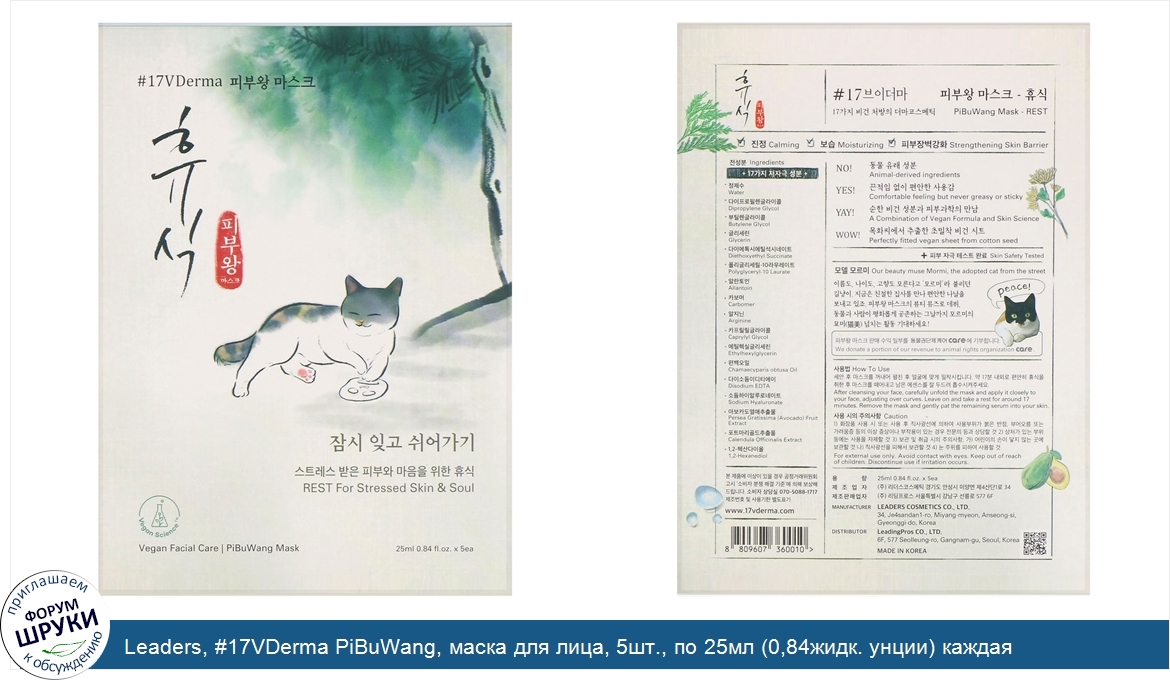 Друзья, если у вас есть отзыв/дополнение/комментарий/вопрос относительно Leaders, #17VDerma PiBuWang, маска для лица, 5шт., по 25мл (0,84жидк. унции) каждая - напишите его ответом в эту тему (это будет полезно всему сообществу в целом и вам в отдельности).