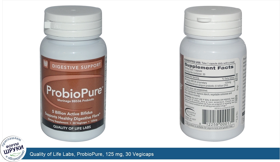 Quality of Life Labs, ProbioPure, 125 mg, 30 Vegicaps