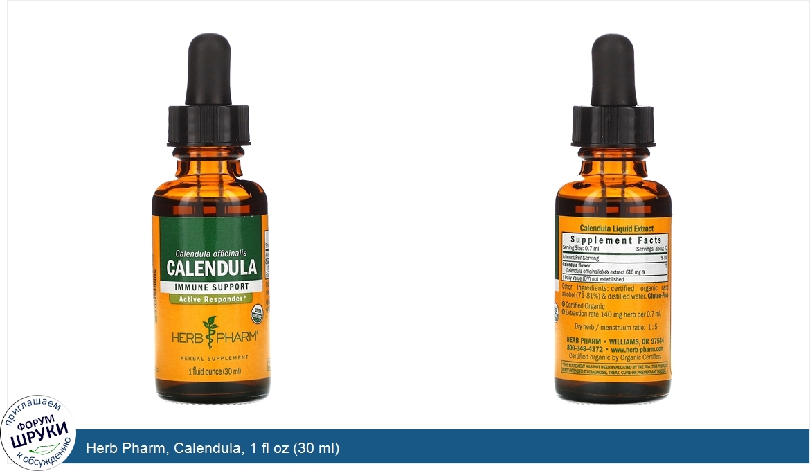 Друзья, если у вас есть отзыв/дополнение/комментарий/вопрос относительно Herb Pharm, Calendula, 1 fl oz (30 ml) - напишите его ответом в эту тему (это будет полезно всему сообществу в целом и вам в отдельности).