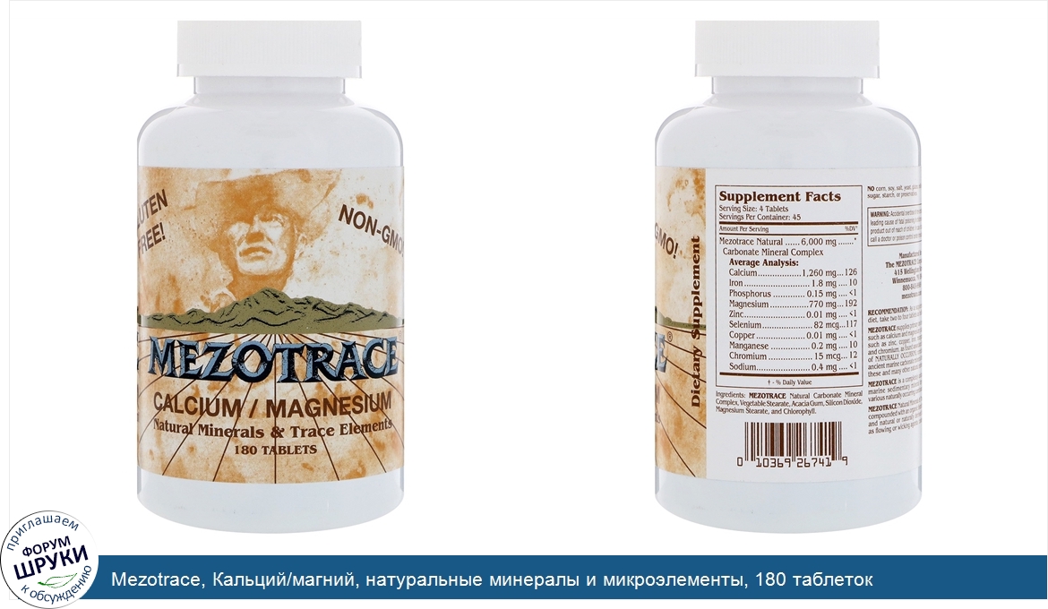 Друзья, если у вас есть отзыв/дополнение/комментарий/вопрос относительно Mezotrace, Кальций/магний, натуральные минералы и микроэлементы, 180 таблеток - напишите его ответом в эту тему (это будет полезно всему сообществу в целом и вам в отдельности).