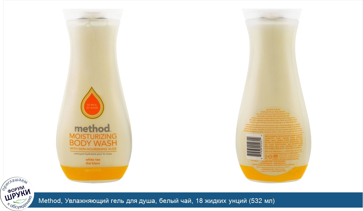 Друзья, если у вас есть отзыв/дополнение/комментарий/вопрос относительно Method, Увлажняющий гель для душа, белый чай, 18 жидких унций (532 мл) - напишите его ответом в эту тему (это будет полезно всему сообществу в целом и вам в отдельности).