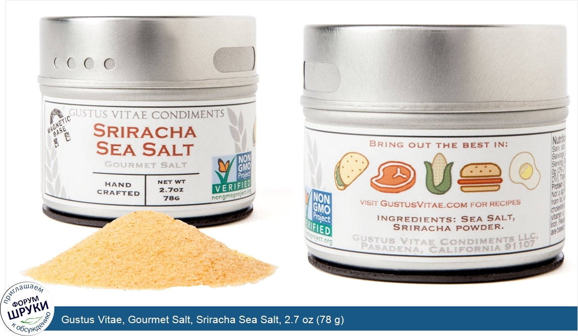 Друзья, если у вас есть отзыв/дополнение/комментарий/вопрос относительно Gustus Vitae, Gourmet Salt, Sriracha Sea Salt, 2.7 oz (78 g) - напишите его ответом в эту тему (это будет полезно всему сообществу в целом и вам в отдельности).
